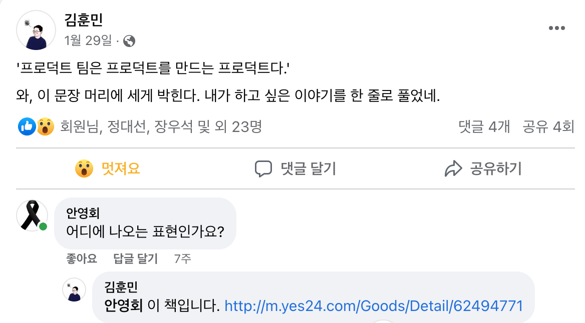 더불어, 제가 이미 오래 된 글인 ‘Why Software Is Eating the World‘ 를 마음에 계속 담고 있었던 이유도 찾은 듯합니다. 소프트웨어는 사용자 가치를 위해서 제품의 모양을 변형합니다. 그래서, 영어권이 아닌 우리나라에서는 ‘제품’ 이라는 말과 ‘프로덕트’라는 말이 전혀 다른 맥락에서 쓰이기도 합니다.
